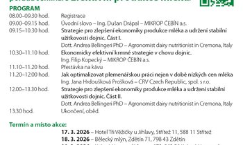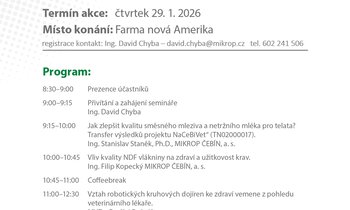 Pozvánka na seminář Moderní trendy v chovu dojeného skotu konaný 29.1.2026 - Farma nová Amerika