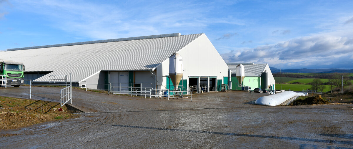 Poľnohospodárske družstvo vybudovalo dve nové maštale s celkovou kapacitou 552 dojníc. Oceľové konštrukcie s rozmermi 85 x 38 m a výškou 14 m poskytujú v každom objekte 240 ustajňovacích miest a 36 miest v selekčnej zóne. Maštale sú riešené ako trojradové objekty s centrálnym kŕmnym stolom. Ide o maximálne otvorené a vzdušné stavby s rolovacími ventilačnými plachtami. Zastrešenie tvorí tepelnoizolačný PUR panelový systém, ktorý obmedzuje tepelné zisky a prispieva k eliminácii prehrievania vnútorného priestoru. Miestnosť pre dojacie roboty je čiastočne vysunutá mimo hlavný objekt. V oboch maštaliach je inštalovaných spolu osem dojacích robotov GEA Dairy Robot R9500, rozdelených do štyroch sekcií. Zásobník s kapacitou 12 ton granulovanej kŕmnej zmesi zabezpečuje zásobovanie pre dvojicu robotov. Odstraňovanie exkrementov je riešené systémom vyhŕňacích lopát, ktoré hmotu presúvajú do systému hospodárenia s hnojovicou pozostávajúceho z dvoch zásobníkov. Tekutá frakcia sa využíva na hnojenie trvalých trávnych porastov a ornej pôdy, zatiaľ čo tuhá frakcia (separát) slúži ako podstielkový materiál. Vetranie a osvetlenie sú plne automatizované. Bočné rolety reagujú na aktuálne klimatické podmienky a nad boxami sú inštalované lamelové ventilátory ECV s frekvenčnými meničmi. Dojnice majú k dispozícii vyhrievané napájačky.