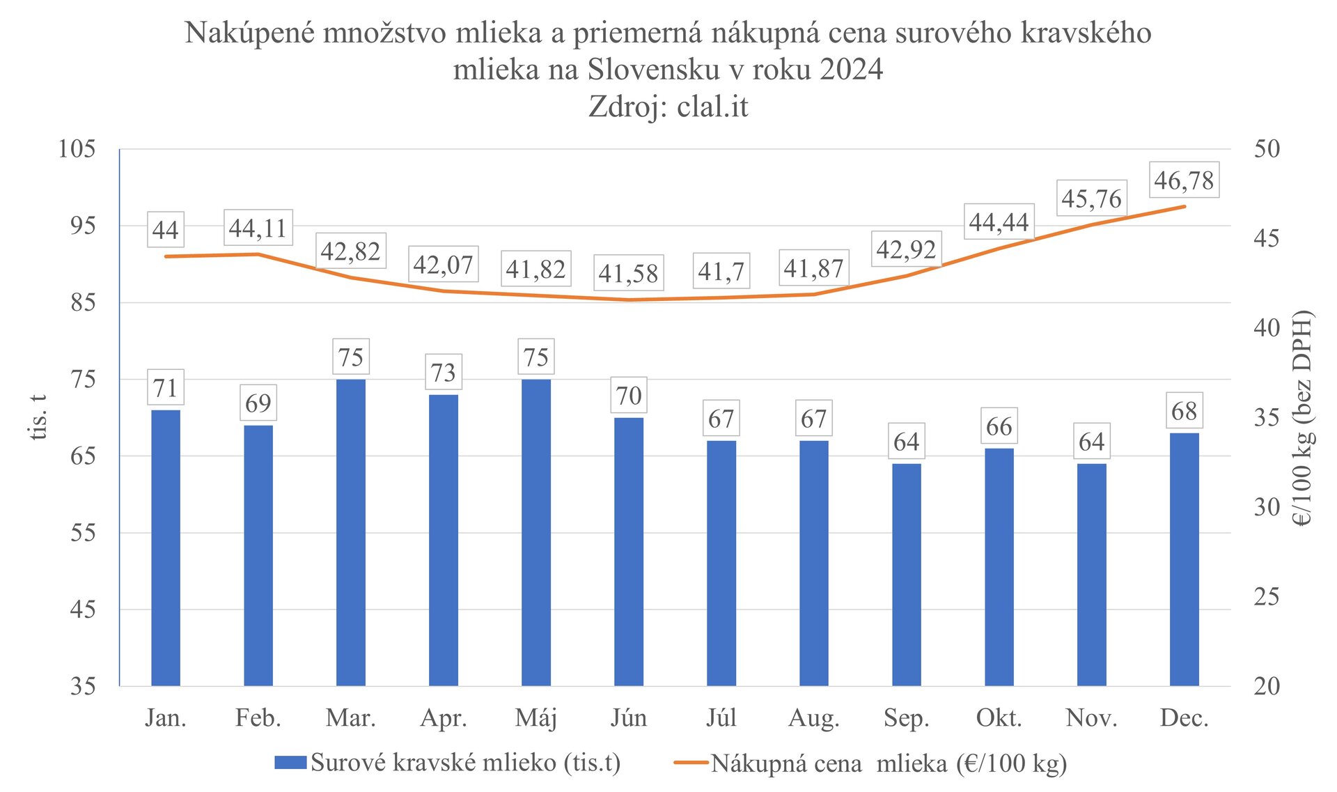 Slovensko prispelo v roku 2024 do dodávok mlieka v EÚ len 0,6 %, čo prestavovalo 829 tis. ton mlieka dodaných do mliekarní (medziročne nárast o 2,7 %), s priemerným obsahom tuku 3,91 % a bielkovín 3,43 %.