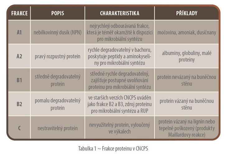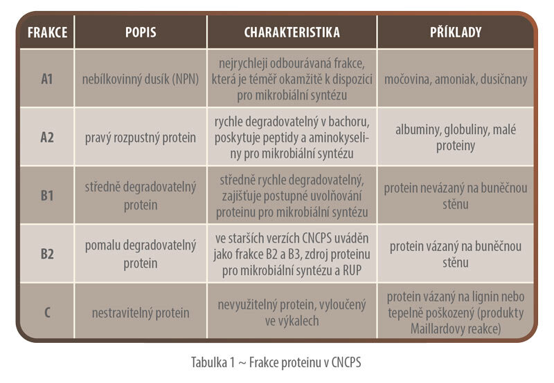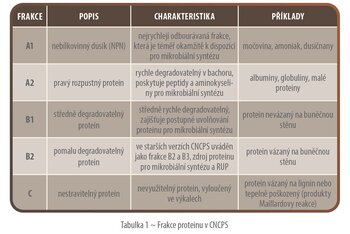 · CNCPS rozděluje sacharidy a proteiny do frakcí,