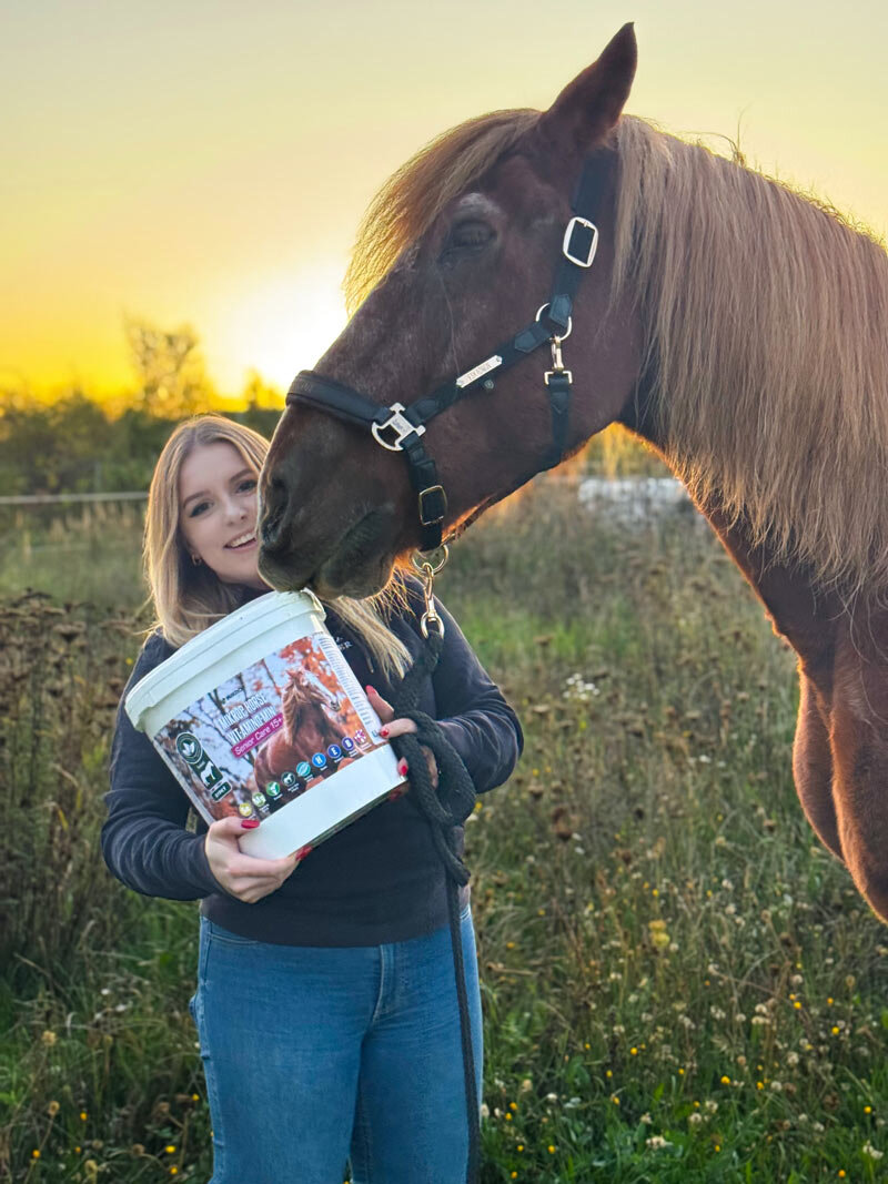 S testováním nových produktů nám vždy pomáhají naši partneři a zákazníci, Vit.Amino.Min Senior Care důkladně testoval především náš koňský ambasador Mates plemene Českomoravský belgický kůň. Mates je 25letý senior a instagramový influencer, jeho videa můžete sledovat i na našem instagramu @mikrop.horse. Asistenci při zkoušení nové receptury samozřejmě ochotně poskytla majitelka Bára.