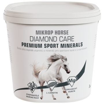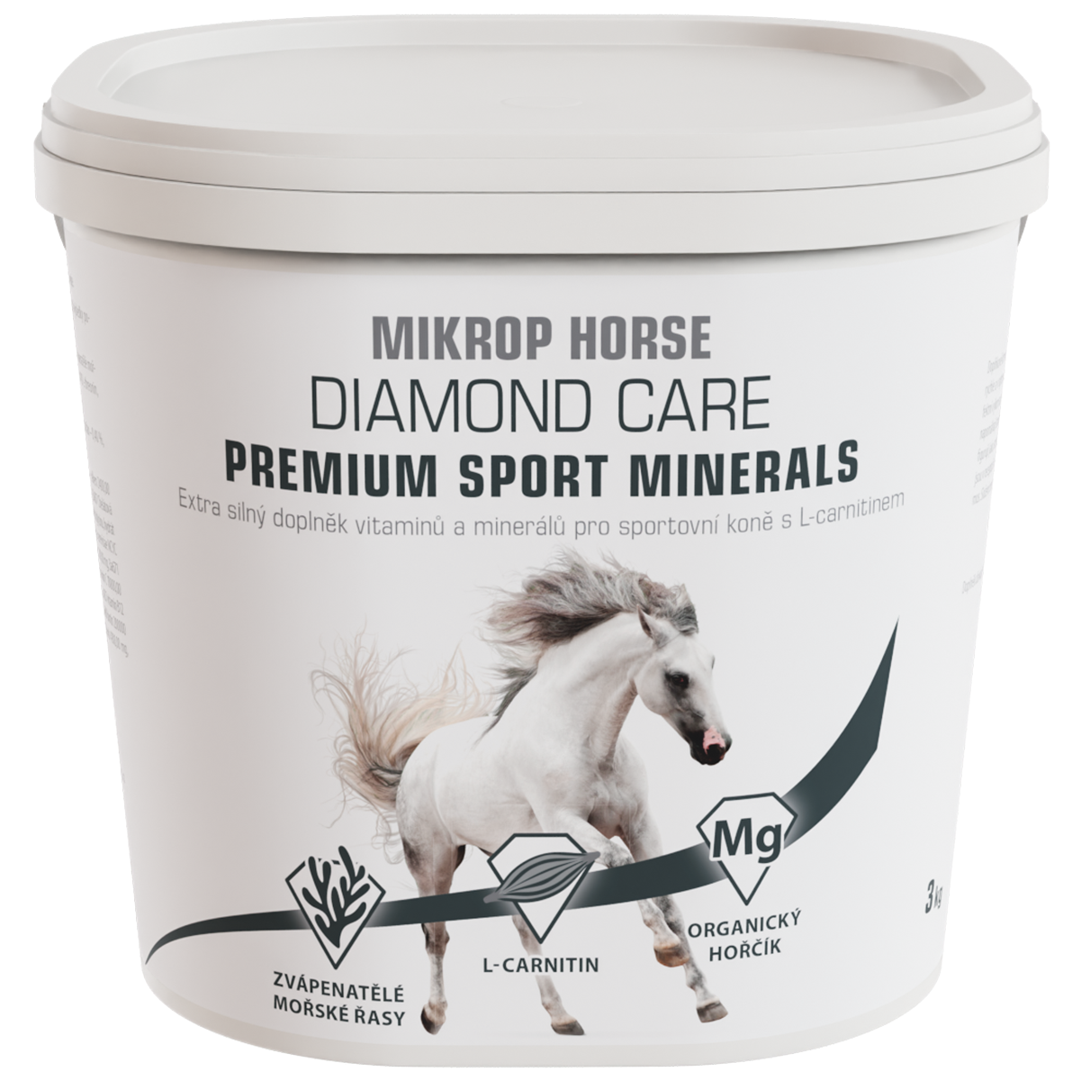 Extra silné vitamino-minerální krmivo s L-karnitinem – to je Mikrop Diamond Care Premium Sport Minerals. Nový přírůstek v diamantové řadě Mikropu obsahuje všechny složky v té nejstravitelnější a nejvyužitelnější formě. Vysoké zastoupení zvápenatělých mořských řas navíc pomáhá tlumit kyselé pH žaludku.